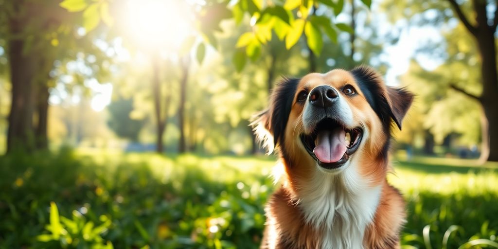 Healthy dog enjoying nature in a sunny park.